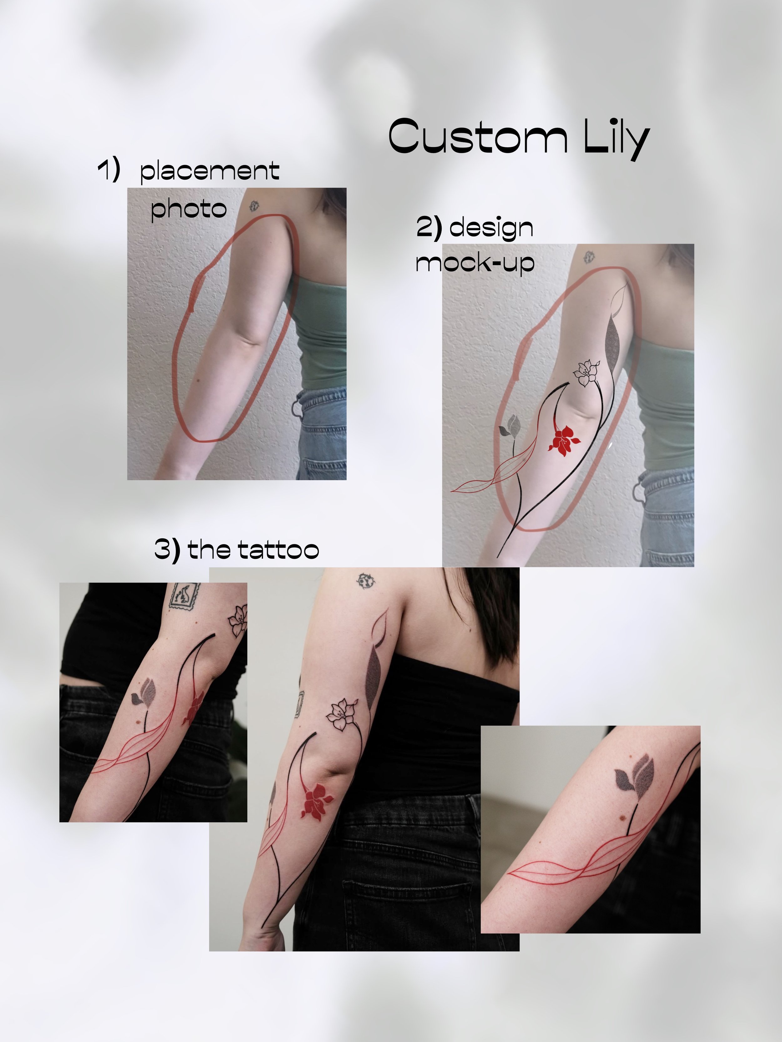 This inquiry will allow you to get a custom Lily design to fit your desired placement, or add on to an existing lily piece!